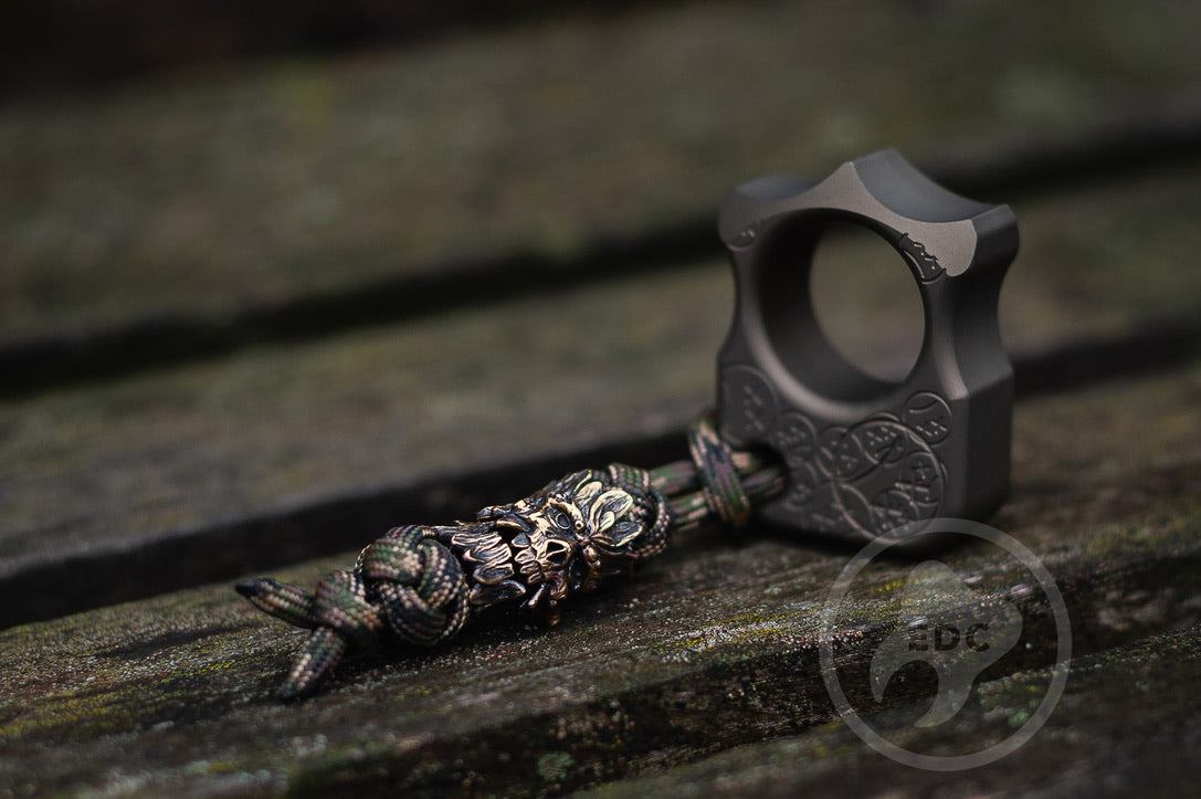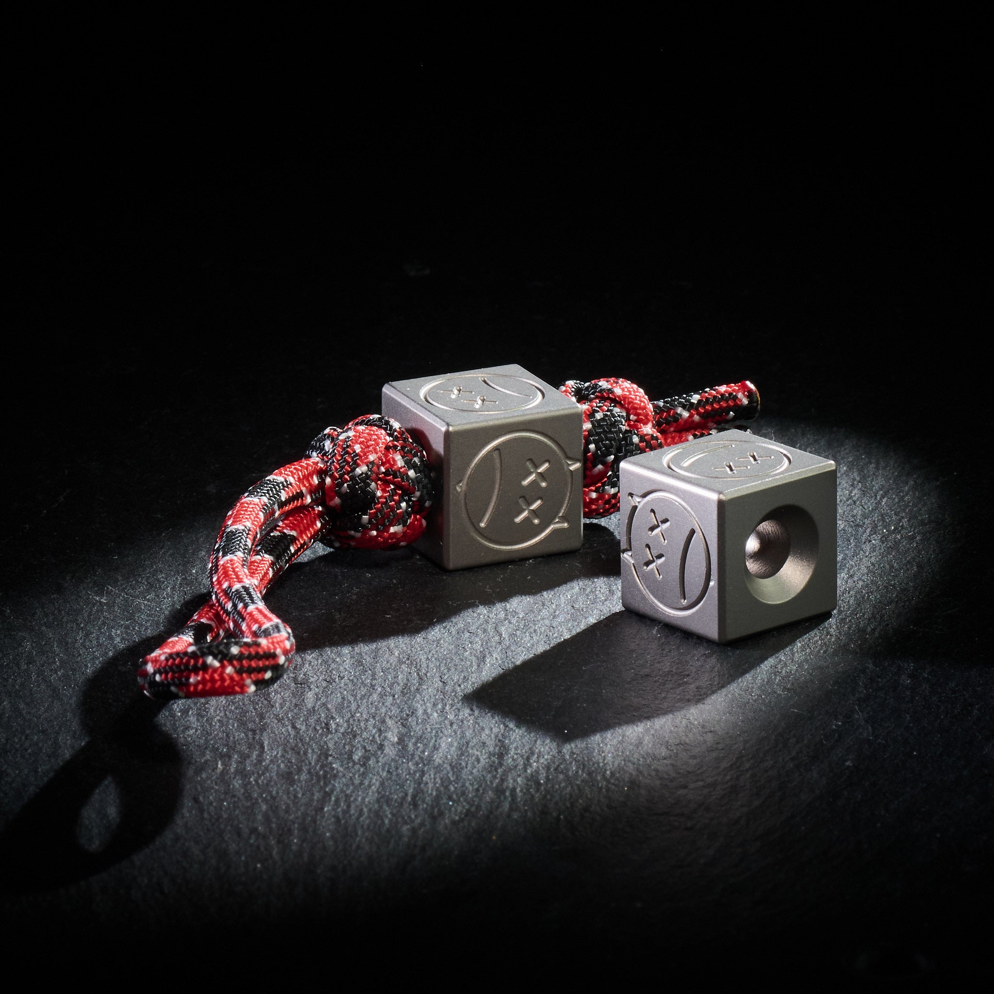 Titanium Sad Face Cube | Knife Lanyard & EDC Paracord Bead