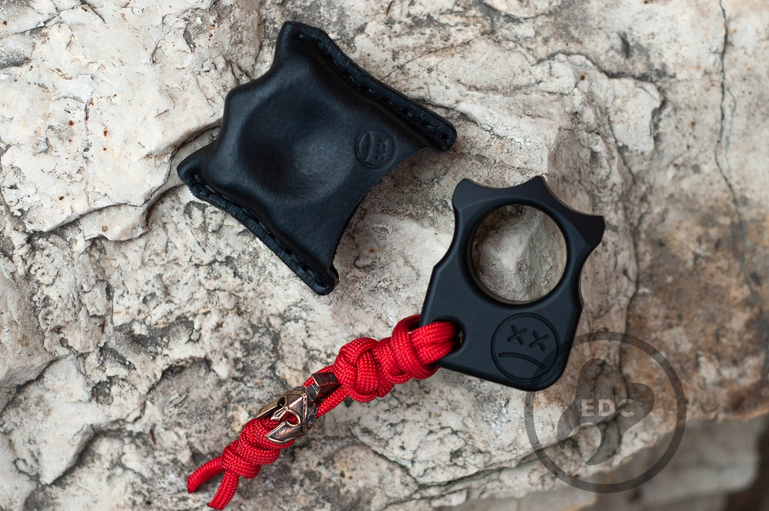 Titanium Sad Face Cube | Cerakote H-190 Armor Black | Knife Lanyard